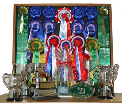 We were lucky enough to have two ponies competing for the Breeders cup and the supreme championship. Melitta went on to win the Breeders cup (the third time we have won that) and was reserve supreme champion of the show. Quite a day! between them our four ponies came home with the seven trophies and twenty rosettes as pictured below.